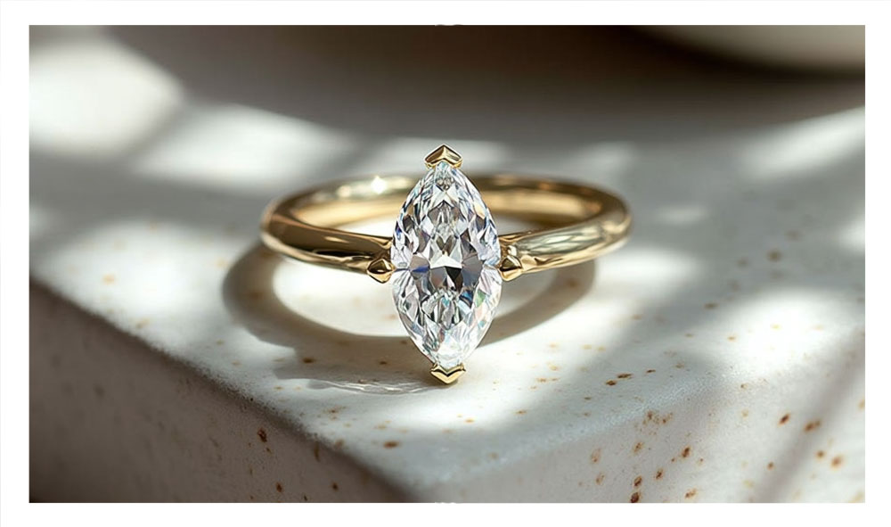 1.50ct+ or premium cuts (emerald, Asscher, radiant); bespoke CAD with pavé shoulders or a fine micro-halo |