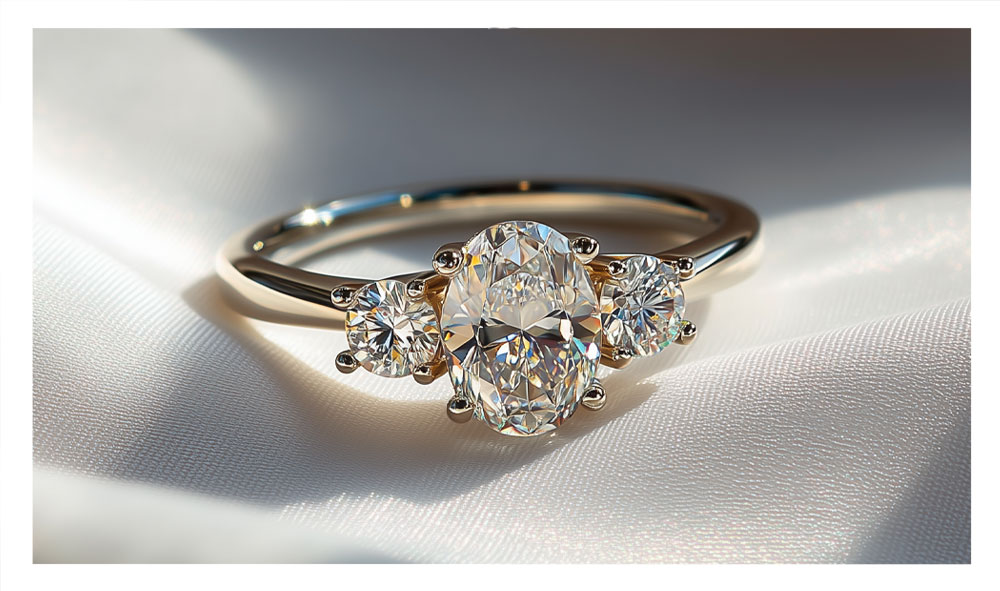 Oval/cushion solitaires or trilogies at a fraction of mined pricing |