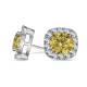 Fancy Yellow Cushion Diamond Halo Earrings (SKU: DHAN605YD)