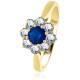 0.60ct VS/E-F Blue Sapphire and Natural Diamond Cluster Ring (SKU: DHLMJBJR0434BSC/SRWH176GLAS)