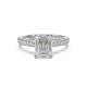 The rectangular emerald diamond anchors this shoulder-set ring with its clean, step-cut facets. Accent stones along the band add sparkle that complements rather than competes with the centre stone's understated elegance. The setting showcases the diamond's clarity and precise angles whilst the tapered band provides everyday comfort. Explore all of our engagement rings.