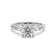 Three round diamonds sit side by side in this trilogy engagement ring design. Representing past, present and future. The setting holds all three stones securely and the band keeps the focus on the trio above. This style offers symbolic meaning alongside visual balance. It works for those who value sentiment as much as appearance.